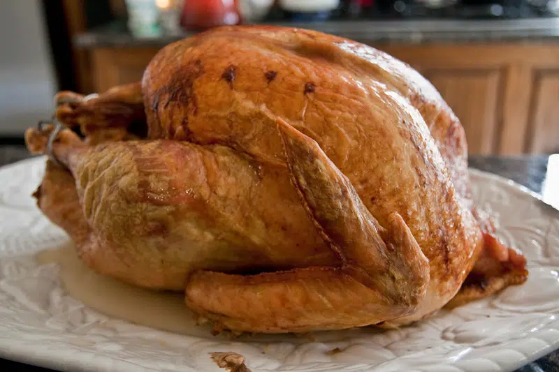 Those ingredients include approximately five pounds of frozen turkey breast, potatoes & gravy, fresh vegetables and a frozen dessert.